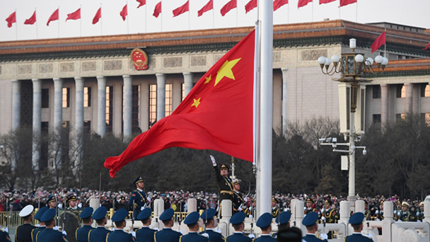1月1日晨,北京天安門(mén)廣場(chǎng)舉行隆重的升國(guó)旗儀式,這是由人民解放軍擔(dān)負(fù)國(guó)旗護(hù)衛(wèi)任務(wù)后,首次舉行的升旗儀式。