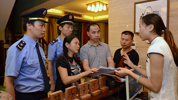 福建武夷山市紀(jì)委組織的檢查組人員在武夷山度假區(qū)一家私人會(huì)所進(jìn)行公款消費(fèi)檢查(2014年9月1日攝)。近日,新華社記者就落實(shí)習(xí)近平總書記重要指示精神,進(jìn)一步推進(jìn)作風(fēng)建設(shè),采訪了中央紀(jì)委有關(guān)負(fù)責(zé)同志。