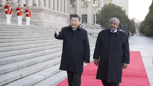 11月23日,國家主席習(xí)近平在北京人民大會堂同來華進(jìn)行國事訪問的吉布提總統(tǒng)蓋萊舉行會談。