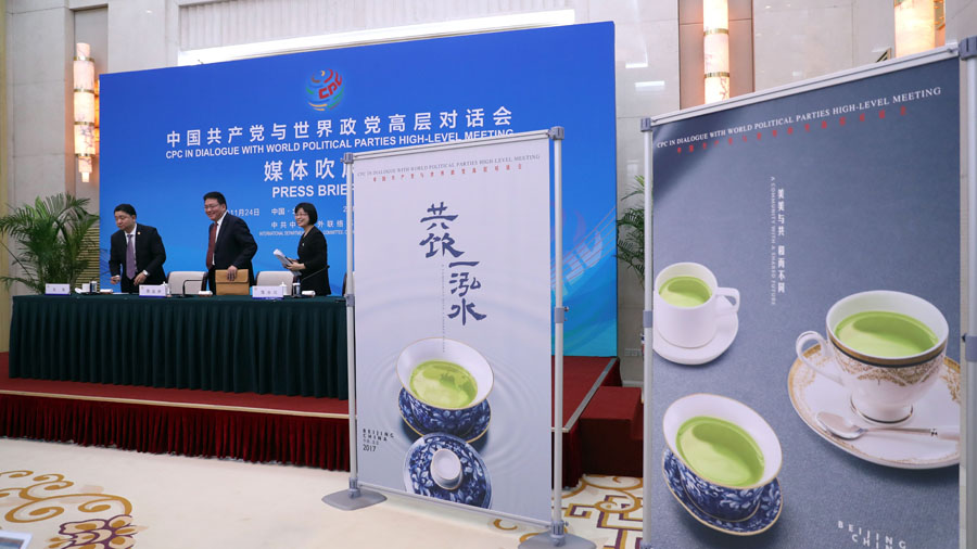 2017年11月24日,中國共產(chǎn)黨與世界政黨高層對話會海報《共飲一泓水》和《美美與共、和而不同》正式發(fā)布。