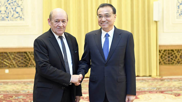 11月24日,國務(wù)院總理李克強在北京人民大會堂會見法國外長勒德里昂。