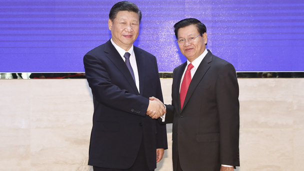 11月14日,中共中央總書記、國家主席習近平在萬象國家會議中心會見老撾總理通倫。