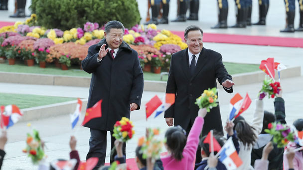 11月17日,國家主席習近平在北京人民大會堂同來華進行國事訪問的巴拿馬總統(tǒng)巴雷拉舉行會談。這是習近平和夫人彭麗媛同巴雷拉夫婦合影。