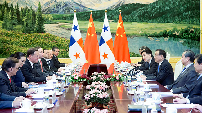 11月17日,國務院總理李克強在北京人民大會堂會見來華進行國事訪問的巴拿馬總統(tǒng)巴雷拉。