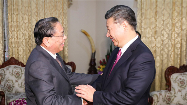 中共中央總書記、國家主席習近平13日在萬象會見前老撾人民革命黨中央委員會總書記、國家主席朱馬里。
