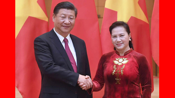 中共中央總書記、國家主席習近平12日在河內會見越南國會主席阮氏金銀。