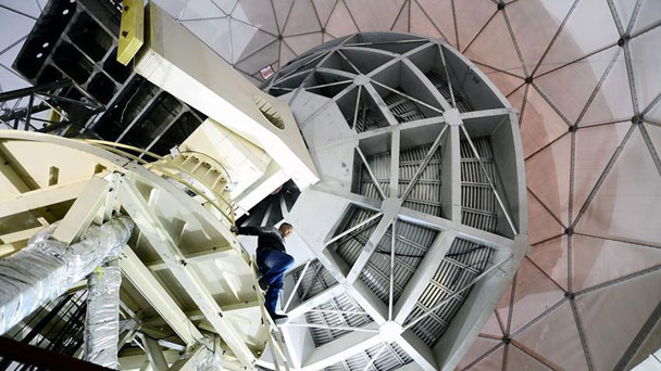 10月27日,中國(guó)科學(xué)院紫金山天文臺(tái)青海觀測(cè)站助理工程師張永興在檢查13.7米毫米波射電望遠(yuǎn)鏡設(shè)備運(yùn)行狀況。