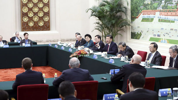 10月30日,國(guó)家主席習(xí)近平在北京人民大會(huì)堂會(huì)見清華大學(xué)經(jīng)濟(jì)管理學(xué)院顧問委員會(huì)海外委員和中方企業(yè)家委員。新華社記者 鞠鵬 攝