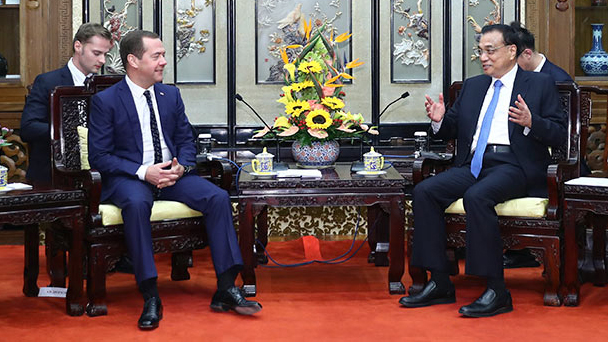 10月31日,國(guó)務(wù)院總理李克強(qiáng)在北京釣魚臺(tái)養(yǎng)源齋會(huì)見來華進(jìn)行正式訪問并出席中俄總理第二十二次定期會(huì)晤的俄羅斯總理梅德韋杰夫。新華社記者 謝環(huán)馳 攝
