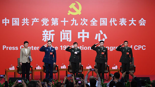 10月22日,中國共產黨第十九次全國代表大會新聞中心舉行主題為“中國特色強軍之路邁出堅定步伐”的集體采訪活動。