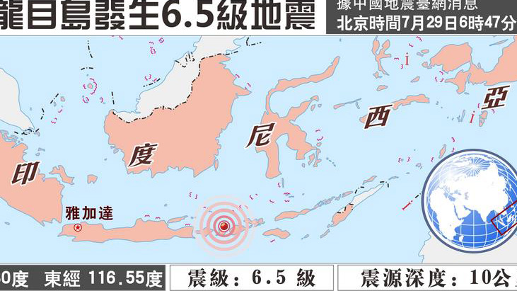 印度尼西亞29日早上發生里氏6.4級地震。震中位于東努沙登加拉省東弗洛勒斯縣西北115公里處海域,震源深度為596公里。