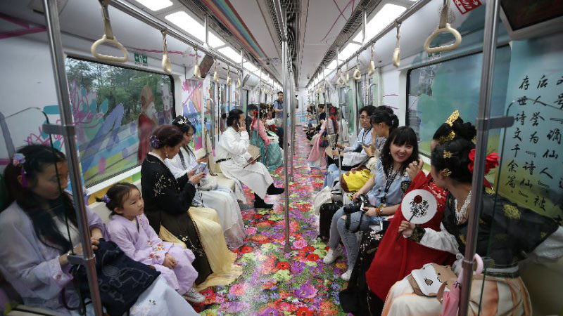 西安地鐵推出“唐風詩韻文化專列”,讓乘客仿佛穿越歷史,在唐都長安的風雅詩意中領略現代西安的神韻芳華。