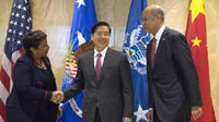 12月1日,中華人民共和國國務院國務委員、公安部部長郭聲琨在華盛頓與美國司法部部長林奇、美國國土安全部部長約翰遜共同主持了首次中美打擊網絡犯罪及相關事項高級別聯合對話。