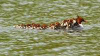 近日有人拍攝到一只鴨子媽媽或背或帶,領著16只小鴨子游過水塘的一幕,令人倍感溫馨。