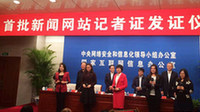 11月6日上午,首批新聞網(wǎng)站記者證發(fā)證儀式在國(guó)家互聯(lián)網(wǎng)信息辦公室舉行。新華網(wǎng)、人民網(wǎng)、中國(guó)日?qǐng)?bào)網(wǎng)、中國(guó)網(wǎng)、國(guó)際在線等14家中央主要新聞網(wǎng)站的594名記者獲發(fā)記者證。