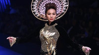 在2015年越南國際時裝周閉幕晚會上,越南模特清恒身著價值12億越南盾( 約合35萬人民幣)鑲金奧黛步入貓步臺閃亮全場。