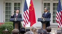 當地時間9月25日,國家主席習近平在華盛頓同美國總統奧巴馬舉行會談。會談后,兩國元首共同會見記者。