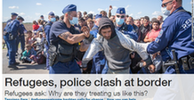 歐洲難民危機持續(xù)發(fā)酵,7日,匈牙利與塞爾維亞邊界一處垃圾遍布的臨時難民安置點爆發(fā)警民沖突。