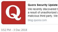 美國信息分享網(wǎng)站——“問與答網(wǎng)站”(Quora)3日發(fā)表公告稱,有1億用戶的數(shù)據(jù)因?yàn)榈谌綈阂夂诳凸舳獾叫孤叮渲邪ㄓ脩舻泥]箱、姓名和被加密的密碼,以及他們在網(wǎng)站上分享的內(nèi)容。