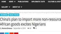 習(xí)近平主席提出了“八大行動(dòng)”,其中為支持非洲國家的經(jīng)濟(jì)發(fā)展,中國將增加非洲產(chǎn)品的進(jìn)口量,特別是非資源產(chǎn)品和制成品,對此提議,尼日利亞專家表示非常歡迎。