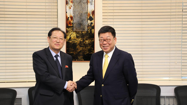 5月5日,朝鮮金日成綜合大學校長兼高等教育相太亨哲一行到訪察哈爾學會北京總部。