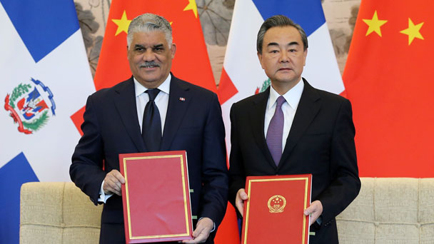 5月1日,國(guó)務(wù)委員兼外交部長(zhǎng)王毅在北京同多米尼加共和國(guó)外長(zhǎng)巴爾加斯簽署《中華人民共和國(guó)和多米尼加共和國(guó)關(guān)于建立外交關(guān)系的聯(lián)合公報(bào)》。