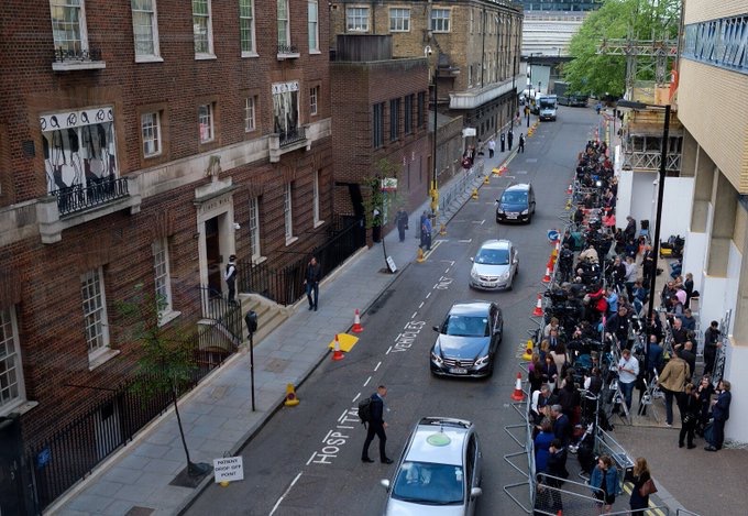 英國當地時間4月23日上午11時01分,凱特王妃在倫敦帕丁頓圣瑪麗醫院的林登私人分院誕下一子。這位新王室成員是威廉王子和凱特王妃的第三個孩子,同時也是英國王室第五順位繼承人。排在他之前的,還有查爾斯王儲、威廉王子、喬治小王子和夏洛特小公主。