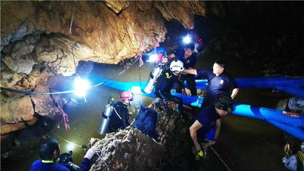 泰國12名少年足球運動員和1名教練6月23日進入泰國一處國家公園洞穴內“探險”后失蹤。連日來,泰國、美國等國的多支救援隊展開晝夜搜救行動。中國洞穴救援專家隊6月29日抵達泰國,加入對13名失蹤泰國少年足球隊成員的搜救行動。
