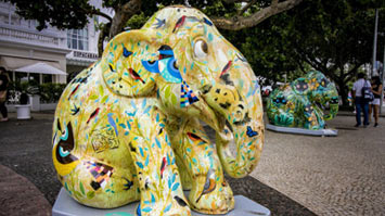 城市變“露天畫廊”!巴西里約熱內盧街頭大象雕塑“穿新衣”