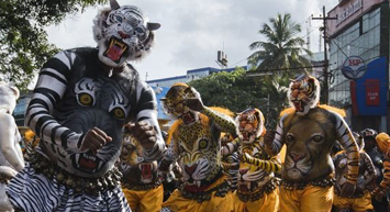 印度傳統(tǒng)虎舞的臺(tái)前幕后 表演者用顏料涂滿全身化身“猛虎”