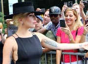 當地時間2016年8月3日,美國紐約,Lady Gaga 黑裙優雅現身手持鮮花扮相復古搶鏡。