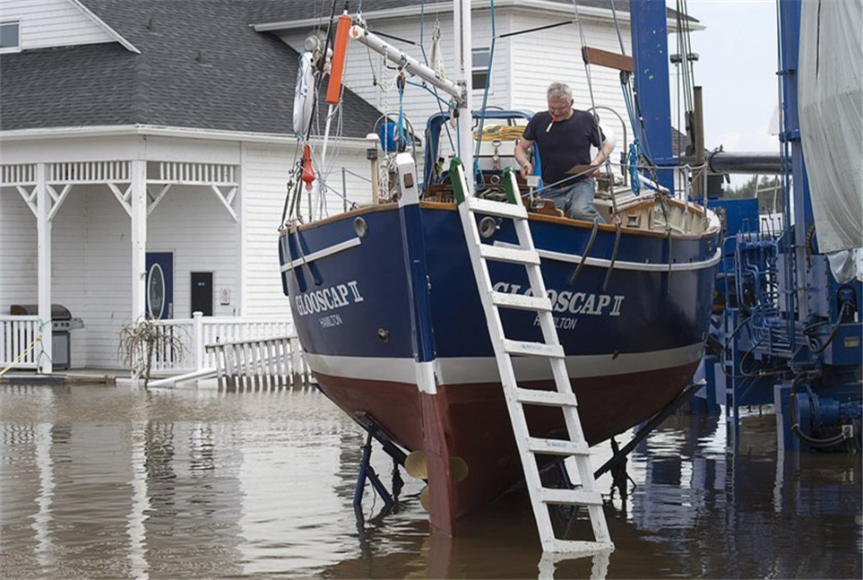 加拿大街道洪水泛濫 民眾被迫淌水出行