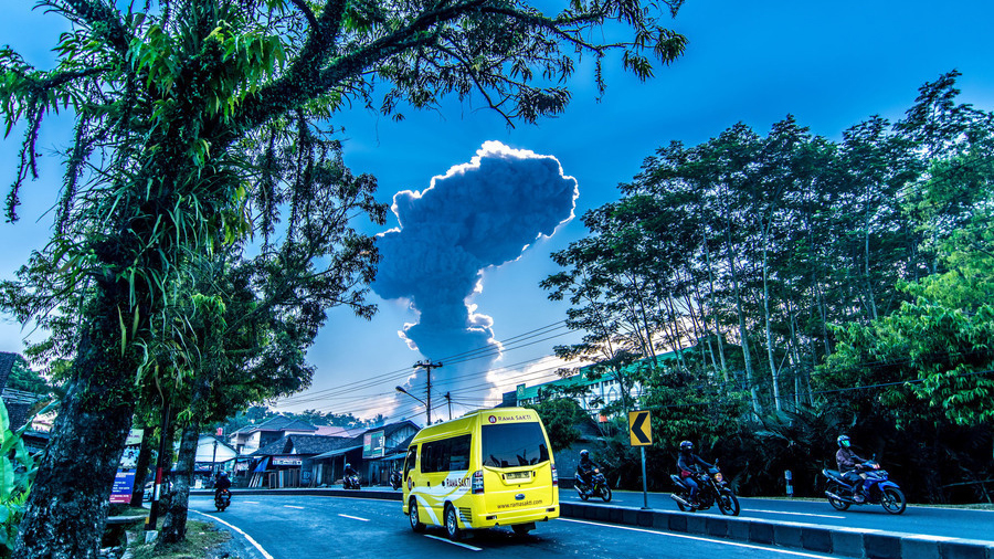 印尼默拉皮火山噴發(fā) 火山灰騰空而起景象壯觀