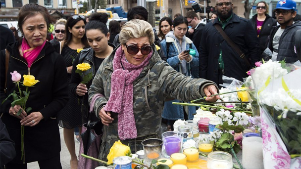 多倫多民眾聚集央街自發獻花 悼念貨車沖撞事故遇難者