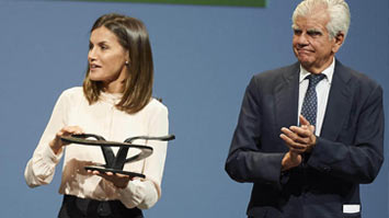 西班牙王妃萊蒂齊亞參加世界癌癥研究日活動 白襯衣西褲顯干練