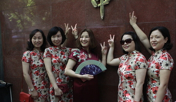 重慶家長穿旗袍助陣高考 寓意“旗開得勝”