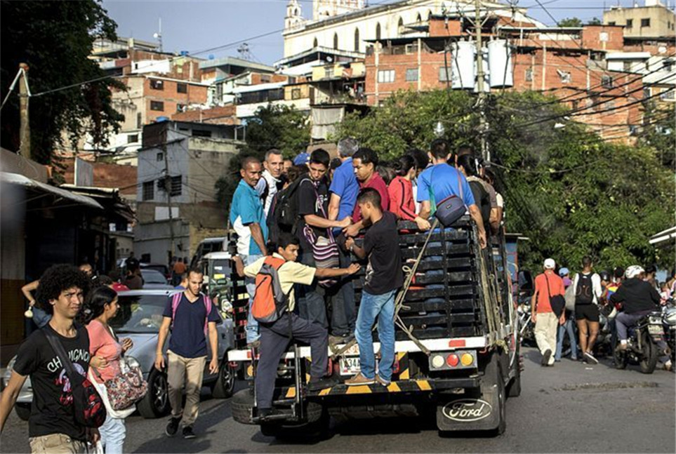 委內瑞拉公共交通滯后 民眾乘“掛票”車出行