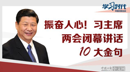 3月20日上午,中共中央總書記、國家主席、中央軍委主席習近平在十三屆全國人大一次會議閉幕會上發表重要講話。“要幸福就要奮斗”、“沒有任何力量能夠阻擋中國人民實現夢想的步伐”、“人間自有公道在!”中國日報網帶你看十大金句!