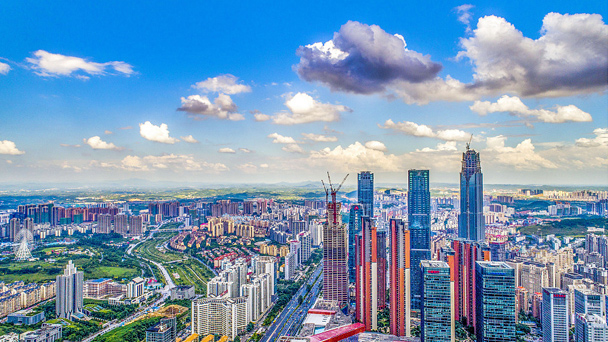隨著南寧城市建設日新月異,南寧城市面貌有了很大發展,在空中觀看南寧市猶如在畫中,風景優美。