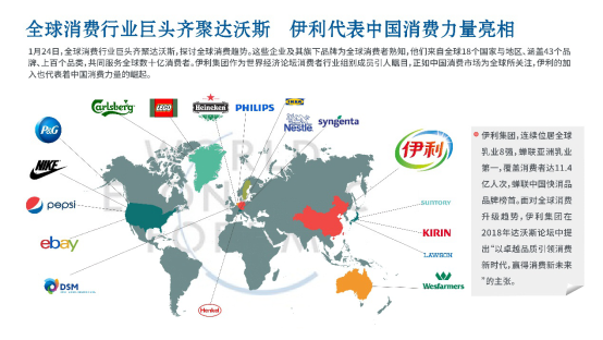 面對全球消費升級的趨勢,全球消費行業巨頭齊聚達沃斯,中國乳業巨頭伊利集團代表中國消費力量亮相達沃斯。