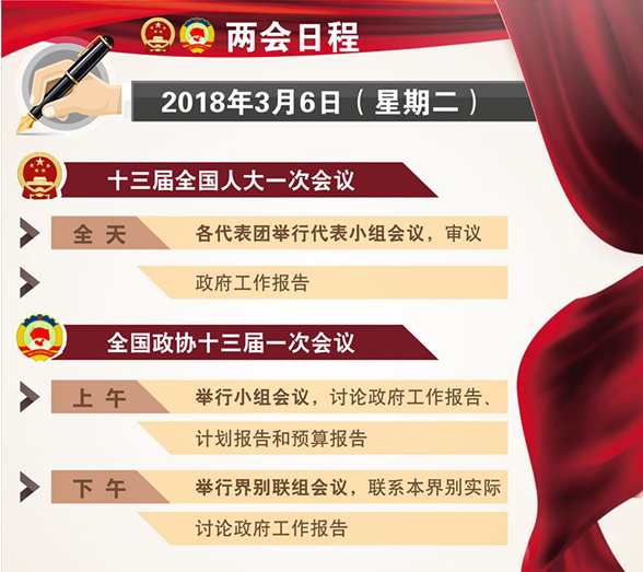 (兩會日程預告)3月6日:繼續審議和討論政府工作報告