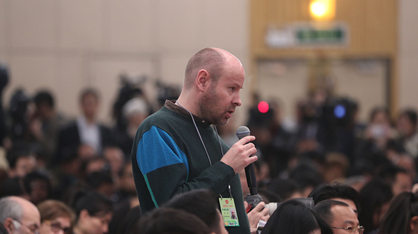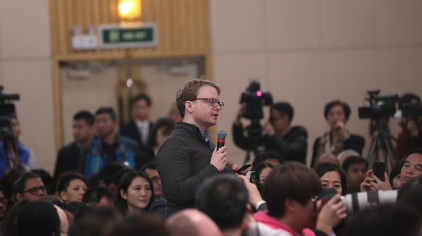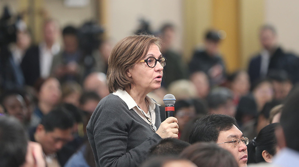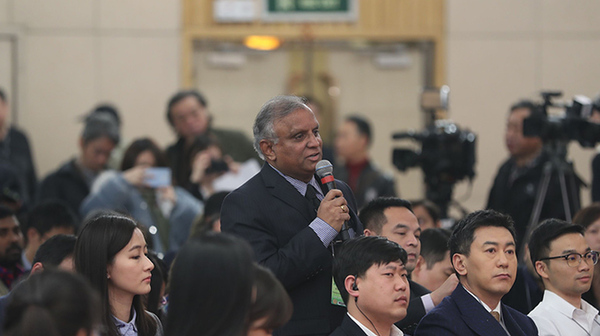 王毅與現(xiàn)場(chǎng)記者互動(dòng)