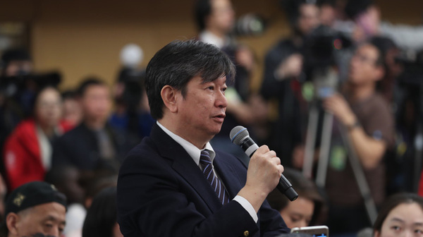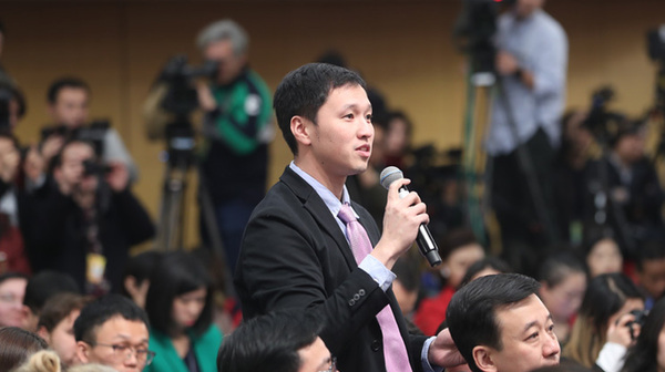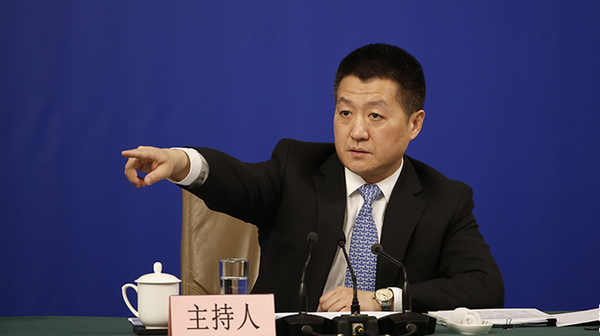 十三屆全國(guó)人大一次會(huì)議新聞中心于3月8日上午10時(shí)在梅地亞中心多功能廳舉行記者會(huì),邀請(qǐng)外交部部長(zhǎng)王毅就“中國(guó)外交政策和對(duì)外關(guān)系”回答中外記者提問。圖為記者會(huì)主持人陸慷。