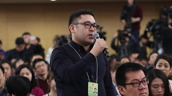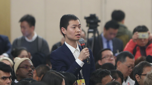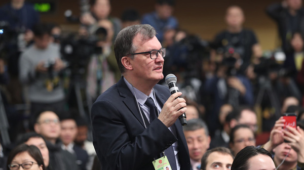 十三屆全國(guó)人大一次會(huì)議新聞中心3月8日上午10時(shí)在梅地亞中心多功能廳舉行記者會(huì),邀請(qǐng)外交部部長(zhǎng)王毅就“中國(guó)外交政策和對(duì)外關(guān)系”回答中外記者提問。圖為王毅與現(xiàn)場(chǎng)記者互動(dòng)。
