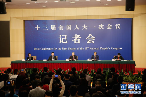 十三屆全國人大一次會議新聞中心3月9日在梅地亞中心多功能廳舉行記者會,邀請中國人民銀行行長周小川,副行長易綱,副行長、國家外匯管理局局長潘功勝就“金融改革與發展”相關問題回答中外記者提問。新華網/中國政府網 王健 攝