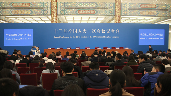 3月20日上午十三屆全國人大一次會議閉幕后,國務院總理李克強將在人民大會堂三樓金色大廳會見采訪十三屆全國人大一次會議的中外記者并回答記者提出的問題。