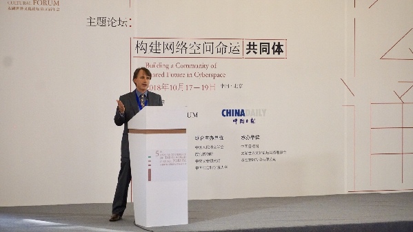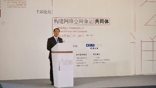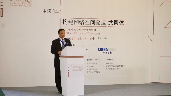 中國日報社副總編輯王浩在“太湖世界文化論壇”主題論壇“構建網絡空間命運共同體”發表致辭