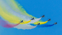當(dāng)?shù)貢r(shí)間8月24日14時(shí)55分,隨著紅、白、藍(lán)三色涂裝的6架殲-10表演機(jī)依次升空,中國(guó)空軍八一飛行表演隊(duì)在俄羅斯國(guó)際軍事技術(shù)論壇上精彩亮相。