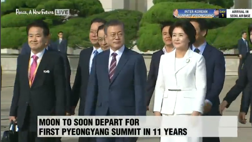 韓國總統文在寅乘專機前往平壤與朝鮮最高領導人金正恩會晤。
