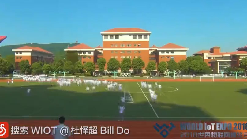 2018世界物聯網博覽會9月15日起將在無錫舉行。近日,無錫市第一中學同學們課間集合準備做操,突然音樂切換,一場突如其來的物博會快閃空降無錫一中。